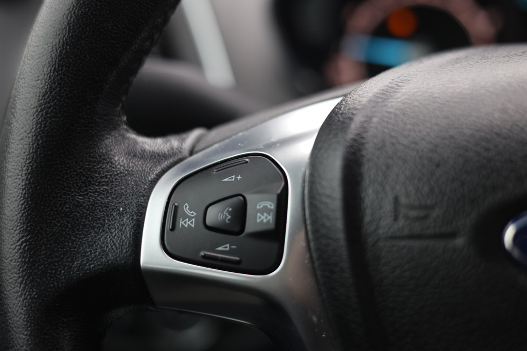 De achteruitrijcamera laat duidelijk zien hoeveel ruimte u nog heeft bij het inparkeren. Audio-installatiesysteem en navigatiesysteem zijn gecombineerd. Zo wordt zelfs gesproken route-informatie een luisterervaring! En dankzij bluetooth klinkt uw favoriete playlist geweldig. Automatische airconditioning verwarmt of koelt het interieur met een druk op de knop. Het drukke verkeer eist onderweg al uw aandacht op. Daarom is het goed dat deze Ford is voorzien van diverse systemen die u assisteren tijdens de rit. Een automatisch inschakelbare verlichting neemt het waar als het donker wordt of gaat schemeren, en schakelt dan automatisch de verlichting in. Op dezelfde manier "ziet" de regensensor de eerste spatjes regen en schakelt dan de ruitenwissers in, en als het harder gaat regenen zet hij de ruitenwissers ook in een snellere stand. Meer rijcomfort en minder brandstofgebruik? Even de cruise control instellen en dan ontspannen rijden! En deze auto heeft ook dashboard met spraakbediening, DAB ontvangst, automatisch dimmende binnenspiegel, lederen stuur, centrale deurvergrendeling met afstandsbediening en boordcomputer als standaard uitrusting.