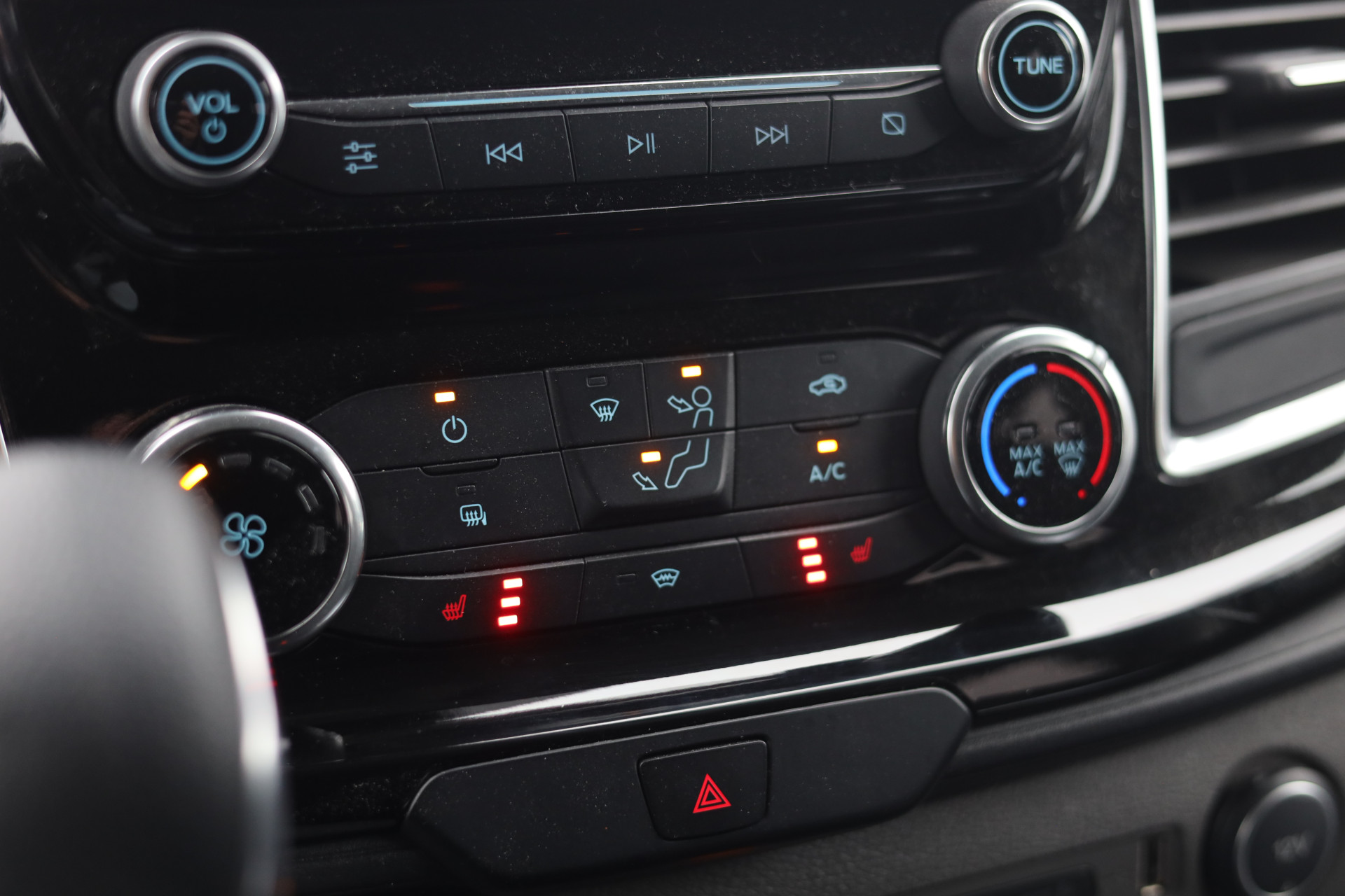 Strak inparkeren wordt een fluitje van een cent door de achteruitrijcamera. Adaptive cruise control is veilig en comfortabel. De snelheidsregelaar houdt automatisch afstand tot het voertuig dat voor u rijdt. Een goede veiligheidsvoorziening is de spraakbediening en stuurbediening voor belangrijke functies. Het audiosysteem biedt glasheldere geluidskwaliteit dankzij DAB-ontvangst. In deze Ford kunt u zich concentreren op het verkeer, terwijl de auto de omgeving voor u in de gaten houdt. Een automatisch inschakelbare verlichting zorgt dat de verlichting aangaat als het donkerder wordt - in tunnels bijvoorbeeld - en de regensensor schakelt de ruitenwissers in als het nodig is. U hoeft er niets aan te doen. Ja, airconditioning is er natuurlijk ook in deze auto. De uitrusting van deze Ford is met lederen stuur, centrale deurvergrendeling met afstandsbediening, boordcomputer en lederen versnellingspook behoorlijk compleet.