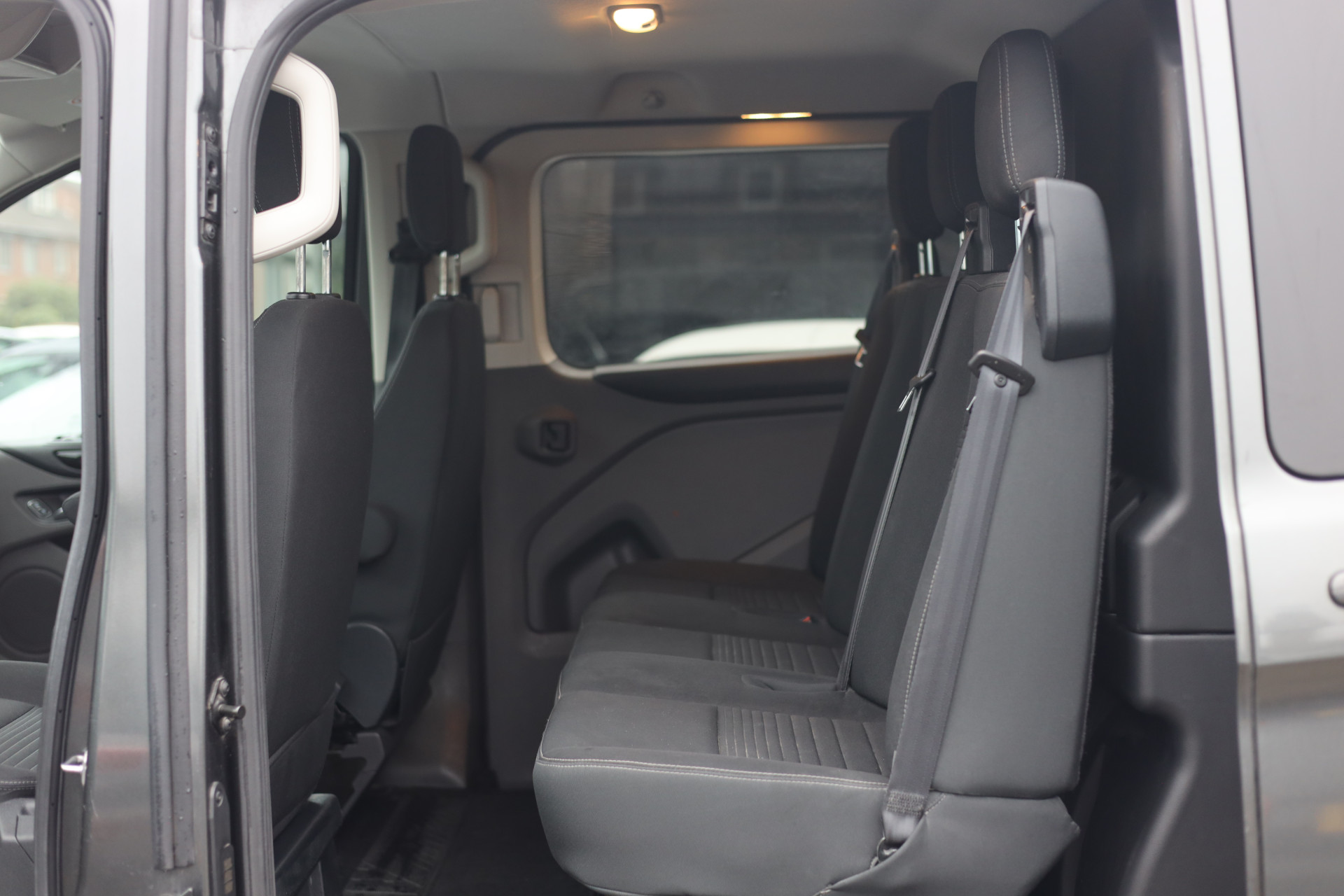Zoals u mag verwachten van deze Ford Transit Custom is hij uitgerust met een reeks aan actieve veiligheidssystemen. Een camera houdt de juiste koers binnen de rijstrook in de gaten en het Lane-keeping systeem corrigeert bij afwijkingen. Vermoeidsheidsherkenning neemt tekenen van vermoeidheid waar bij de bestuurder. Het systeem voorkomt dat er daardoor ongelukken gebeuren. De Brake Assist haalt het maximum uit de remkracht van deze Ford Transit Custom als zich een noodsituatie voordoet.