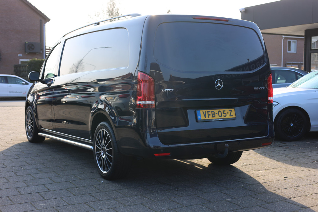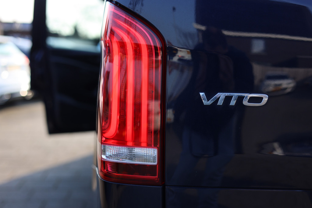 Typerend voor Duitse auto's als deze Mercedes-Benz Vito is dat een mooi ontwerp en uitstekende rijeigenschappen hand in hand gaan. De stijlvol getekende carrosserie verhult een state-of-the-art techniek, motorisch laat deze auto niets te wensen over en het weggedrag van de Vito is uitstekend. Deze diesel heeft een automatische transmissie. Bij de uitrusting van deze Mercedes-Benz horen onder meer 19 inch lichtmetalen velgen, LED koplampen, trailer assistent en LED-achterlichten.