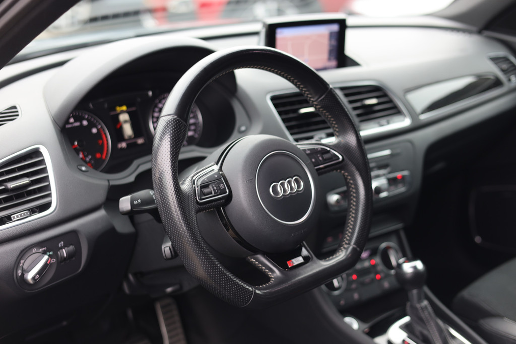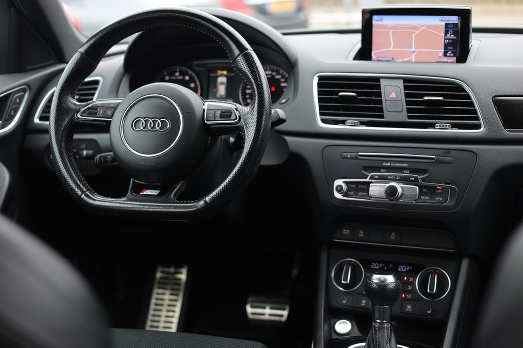 Spraaksturing maakt het eenvoudiger en veiliger om deze auto onderweg te bedienen. Fijn, zo'n trekhaak. Maar niet constant nodig. Daarom heeft deze Audi Q3 een elektrisch inklapbare trekhaak. Het high performance audiosysteem is volledig afgestemd op de akoestiek van de auto; genieten dus! Je weet altijd waar je moet zijn, dankzij het navigatiesysteem met harde schijf. Bij de luxe van deze auto hoort ook electronic climate control. De uitrusting van deze Audi is met parkeersensoren achter, regensensor, cruise control, sportstuurwiel, keyless entry en centrale deurvergrendeling met afstandsbediening behoorlijk compleet.